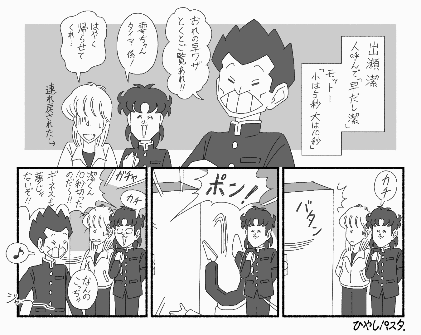 読み切り「続!3年奇面組参上」準拠。話が終始汚いです。
